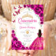 Quinceanera Fuchsia Pink Gold Floral Invitation