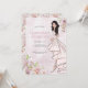A glamorous invitation for a glamorous girl's Quinceañera celebration. Featuring gorgeous florals and a beautiful girl with long dark hair.