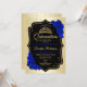 Features script font, royal blue roses, tiara and confetti. Classy sapphire blue design with faux glitter gold. Perfect for an elegant glam celebration.