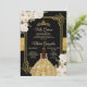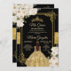 Quinceanera Gold & White Floral Birthday Crown Black background Invitation