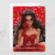 This modern style 5x7 size invite is shown created in a red and black colour scheme with a young lady.