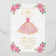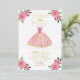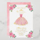 Elegant hot pink gown, floral 15th birthday party invitations.