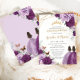 Quinceañera Lilac Dark Purple Plum Floral Twins Invitation