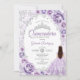 Lilac purple silver Quinceanera celebration invitation. Features brunette girl in ball gown dress, script font, silver butterflies, watercolor roses and tiara. Perfect for an elegant princess style glam celebration. Personalise with your own details. Printed Zazzle invitations or instant download digital printable template.