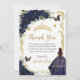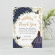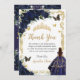 Quinceañera Navy Blue Floral Gold Princess 15 16 Thank You Card