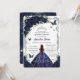 Quinceanera Navy Blue Floral Silver Princess Invitation