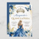 Quinceañera Navy Blue Gold Tiara Floral Butterfly Invitation