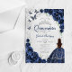Quinceanera Navy Silver Floral Acrylic Invitations