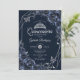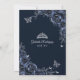 Navy blue and silver Quinceanera celebration invitation. Features, script font, glitter silver butterflies, watercolor roses and tiara. Perfect for an elegant princess style glam celebration. Personalize with your own details. Printed Zazzle invitations or instant download digital printable template.