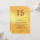 A modern, stylish and glamourous invitation for a Quinceañera, 15th birthday party. A faux gold looking background with faux glitter drips, paint dripping look. The name is written with a modern hand lettered style script. Personalise and add your party details. Number 15 is written with a balloon style font, script.