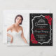 Quinceanera Party With Photo - Black Red Silver Invitation