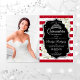 Quinceanera party invitation with your photo. Features dark red white stripes, script font, white roses, tiara and confetti. Classy black white red design with faux glitter silver. Perfect for an elegant celebration.