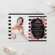 Quinceanera party invitation with your photo. Features black white stripes, script font, pink roses, tiara and confetti. Classy glam design with faux glitter rose gold. Perfect for an elegant celebration.