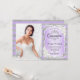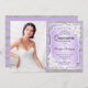 Quinceanera party invitation with your photo. Features stripes, script font, white roses, tiara and confetti. Classy pastel purple, lavender design with faux glitter silver foil. Perfect for an elegant celebration.
