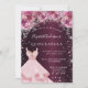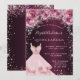 Quinceanera pink burgundy glitter dress floral invitation