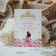 With a refined script and minimalist font combination, this invitation sets the perfect tone for a royal or princess-themed Quinceañera. Personalise it with your event details and ensure your guests mark their calendars for this unforgettable day!