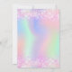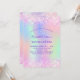 A girly and feminine Quinceañera, 15th birthday party invitation. On front: A rainbow, holographic coloured background in purple, pink, mint green, rose gold. Decorated with blush pink faux glitter, sparkles. Personalise and add a name and party details. The name is written with a hand lettered style script, purple coloured letters.
