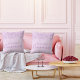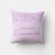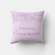 A pillow for a Quinceañera, 15th years old girls room. A girly purple background with purple faux glitter drops, spots. The text: Quinceañera is written in purple with a large modern hand lettered style script. Personalise and add a name.