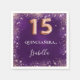 Add a touch of elegance and glamour to your Quinceañera celebration with these beautiful paper napkins. Featuring a deep purple background with an uneven texture, the design is adorned with rose gold and purple faux sparkles for a truly dazzling effect. Personalise the napkins with your name in a stylish hand-lettered script, and the number "15" in a fun, balloon-style font. These napkins are perfect for a 15th birthday party, combining classic sophistication with a girly, glamourous vibe to make your event unforgettable.