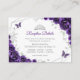 Purple silver and white floral Quinceanera reception details enclosure cards. Features, script font, silver butterflies, watercolor roses and tiara. Perfect for an elegant princess style glam celebration. Personalize with your own details.