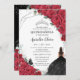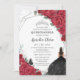Quinceañera Red Floral Black Dress Silver Crown Invitation