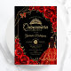 Quinceanera Red Gold Butterfly Dress Floral Invitation