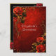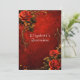 Beautiful red roses with gold accents on the petals, gold filigree corner decorations on a pretty red watercolor background.