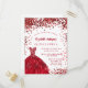 A modern, stylish and glamourous invitation for a Quinceañera, 15th birthday party. A white background with sparkles, a red dress. The name is written with a modern hand lettered style script. Personalise and add your party details.