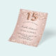 For an elegant Quinceañera, 15th birthday party. A rose gold gradient background. Decorated with rose gold faux glitter dust. Personalise and add a name and party details. The name is written with a hand lettered style script. Number 15 is written with a balloon style font.