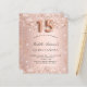 For an elegant Quinceañera, 15th birthday party. A rose gold gradient background. Decorated with rose gold faux glitter dust. Personalise and add a name and party details. The name is written with a hand lettered style script. Number 15 is written with a balloon style font.