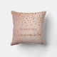 A pillow for a Quinceañera, 15th years old girls room. A rose gold gradient background decorated with golden glitter drops. The text: Quinceañera is written with a large modern hand lettered style script. Personalise and add a name.