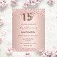 A modern, stylish and glamourous invitation for a girl's Quinceañera, 15th birthday party. A faux rose background with pink drips, paint drip look. The name is written with a modern dark rose gold coloured hand lettered style script. Personalise and add your party details. Number 15 is written with a balloon style font, script.