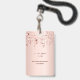 A modern, stylish and glamourous badge for a girl's Quinceañera, 15th birthday party. A faux rose gold metallic looking background with rose gold and pink sparkling stars. The name is written with a modern dark rose gold coloured hand lettered style script. With the text: VIP Number 15 is written with a balloon style font, script.