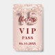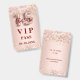 A modern, stylish and glamourous VIP badge for a Quinceañera, 15th birthday party. A rose gold background decorated with confetti. With the text: VIP. Personalise and add name and party details.