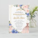 Quinceañera Royal Blue Blush Floral Tiara Dress Invitation