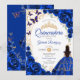 Quinceanera Royal Blue Gold Floral Invitation