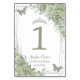 Quinceañera Sage Green Floral Silver Butterflies Table Number