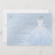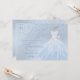 PixDezines quinceanera save the date, featuring watercolor sweet pea flowers in silver glitter watercolor baby blue gown and iridescent light grey background (see filters to change tone) and glitter. All elements are editable.
