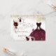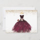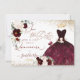 PixDezines elegant quinceanera Save the Date a glittering gown in dark burgundy and watercolor flowers in burgundy, blush hydrangea and lush green foliage,