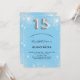 A modern, stylish and glamourous invitation for a girl's Quinceañera, 15th birthday party. A baby blue background, decorated with faux silver glitter dust. Personalise and add your name nad party details. Number 15 is written with a balloon style font, script.