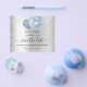 A girly and trendy Save the Date for a Quinceañera, 15th birthday party. A faux silver looking background decorated with faux silver glitter dust and blue balloons. Personalise and add a date and name/age. The text: Save the Date is written with a large trendy hand lettered style script.