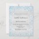 For an elegant Quinceañera, 15th birthday. A faux silver looking background. Decorated with blue faux glitter dust. Personalize and add a name, age and party details. The name is written with a hand lettered style script.