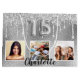 A gift bag for a girly and glamourous Quinceañera, 15th birthday. A faux silver looking background with faux glitter drips, paint dripping look. Personalise and add 3 photos and a name. Number 15 is written with a balloon style font. Perfect as a party favour bag or as a gift bag.