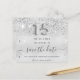 A girly and trendy Save the Date card for a Quinceañera, 15th birthday party. A modern faux silver looking background decorated with faux glitter dust. Personalise and add a date and name/age. Grey coloured letters. The text: Save the Date is written with a large trendy hand lettered style script. Number 15 with a balloon style font.