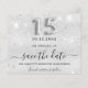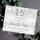 A trendy Save the Date for a Quinceañera, 15th birthday party. A modern faux silver looking background decorated with faux glitter, sparkles. Personalise and add a date and name/age. Grey coloured letters. The text: Save the Date is written with a large trendy hand lettered style script. Number 15 with a balloon style font.