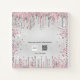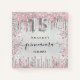 Modern, stylish and glamourous for a girl's Quinceañera 15th birthday party. A faux silver looking background, decorated with pink and faux silver glitter dust. Personalise and a name and a date. Number 15 is written with a balloon style font, script.