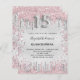 A modern, stylish and glamourous invitation for a girl's Quinceañera, 15th birthday party. A faux silver looking background, decorated with pink and faux silver glitter dust. Personalise and add your name nad party details. Number 15 is written with a balloon style font, script.