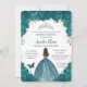 Quinceañera Teal Floral Butterflies Silver Tiara Invitation
