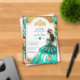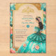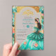 Quinceañera Teal Green Gold Mis Quince Flowers Acrylic Invitations