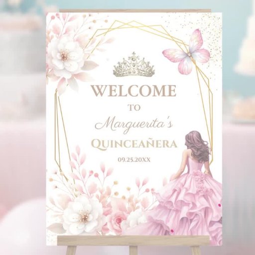 Quinceañera Tiara Girl Pink Floral Butterfly Invitation